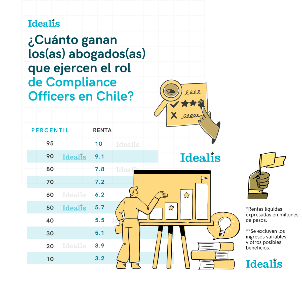 Cada año Idealis Legal Recruitment, en base a su expertise y profundo conocimiento del mercado legal, presenta su Guía Salarial con información actualizada de la remuneración de ciertos perfiles/roles de abogados(as) dentro de la industria. En esta décima edición se incluye, además de los roles de Gerentes Legales, Fiscales y/o Chief Legal Officers, -y por primera vez en una guía especializada- la remuneración promedio del rol de Compliance Officer de empresas.